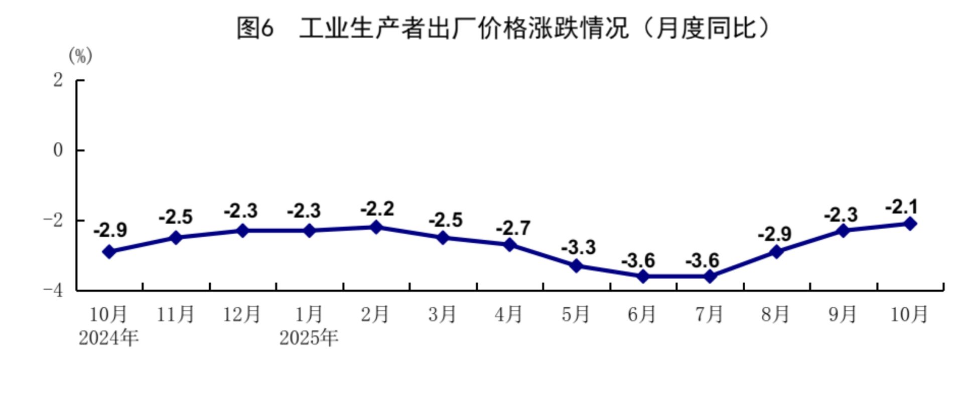 10月份PPI同比下降2.1% 圖片來源:國家統(tǒng)計局