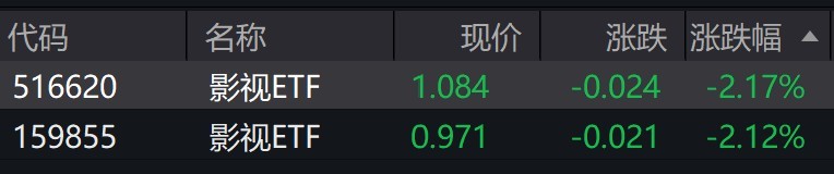 受盤面影響,跟蹤中證影視主題指數(shù)的影視ETF跌超2%。
