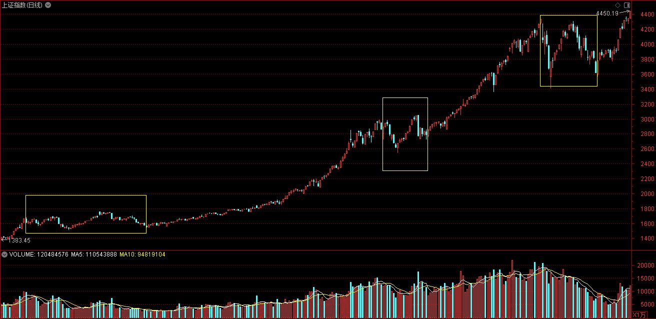2013-2015年的牛市,共有3輪震蕩回調(diào)。