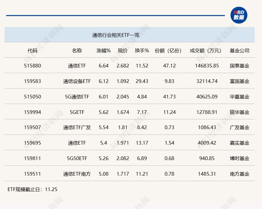 點(diǎn)評(píng):5G通信ETF(515050)和5GETF(159994)今日上午分別上漲6.01%和5.62%,其中,5G通信ETF(515050)規(guī)模較大,其份額達(dá)到41.73億份,半日成交金額為4.06億元。上述兩只ETF追蹤的是中證5G通信主題指數(shù)。