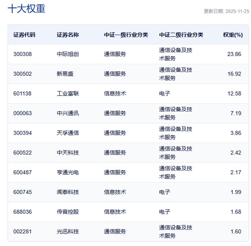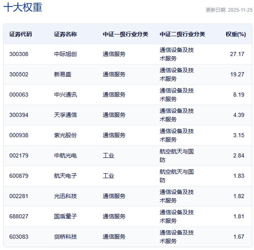 中證通信設(shè)備主題指數(shù)主要權(quán)重股