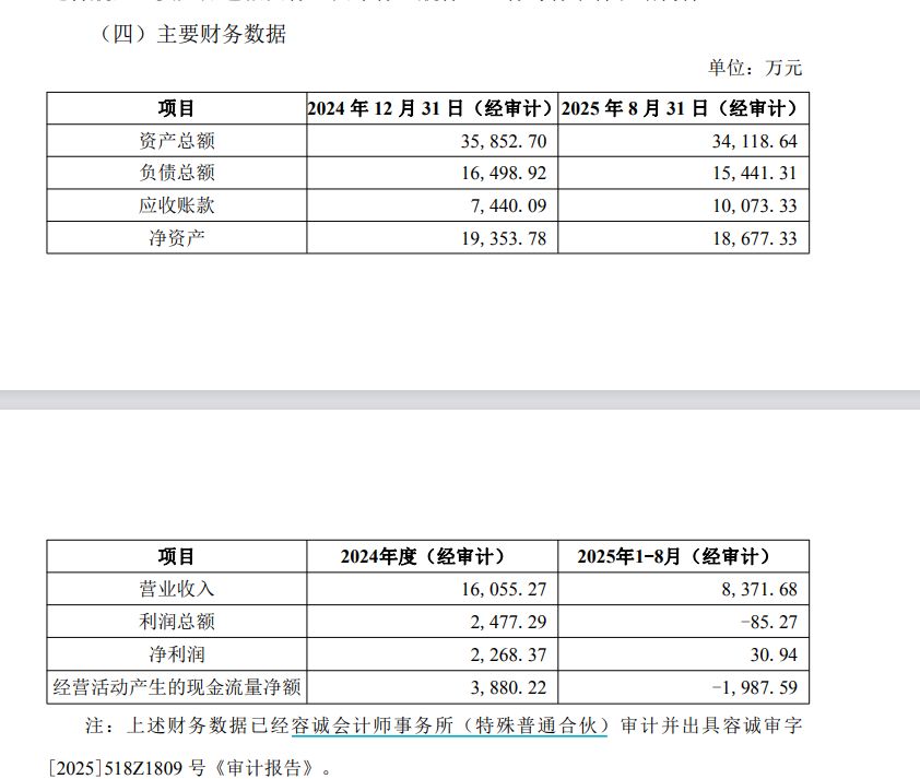 然而到了12月17日,聯(lián)合精密披露的邁特航空截至2024年底的經(jīng)審計(jì)資產(chǎn)總額為3.59億元,負(fù)債總額1.65億元,凈資產(chǎn)1.94億元。2024年度,邁特航空的營(yíng)收1.61億元,凈利潤(rùn)2268.37萬元。