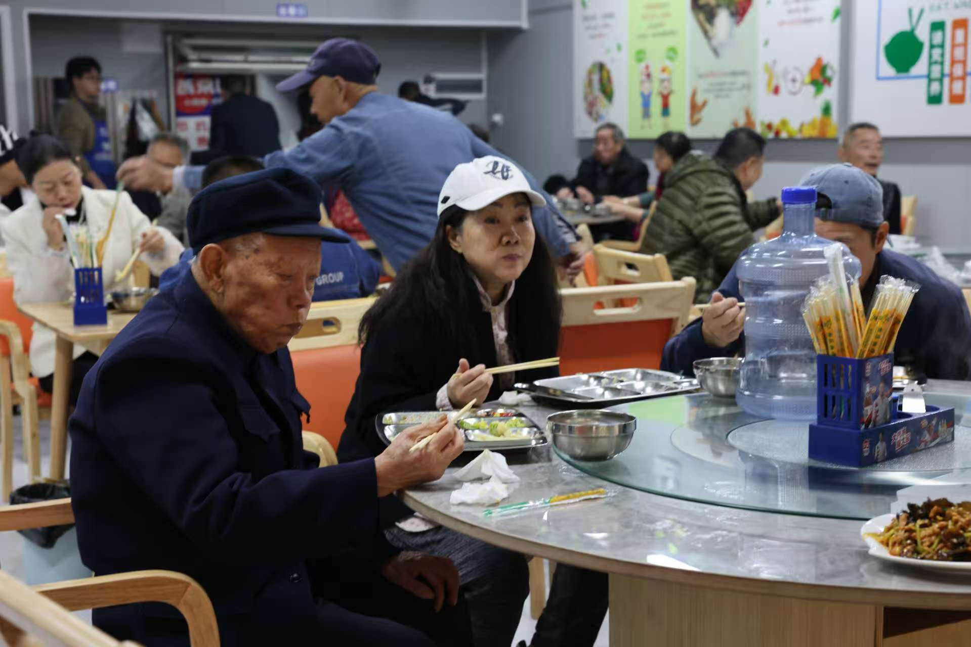 老人在東區(qū)東華街道文華社區(qū)為老服務(wù)站就餐