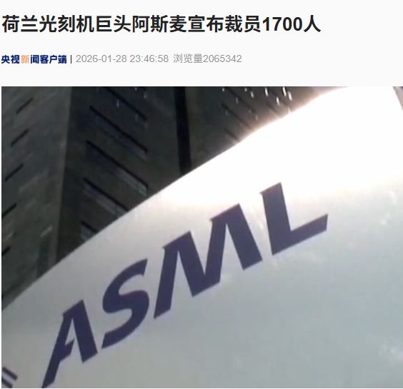 據(jù)央視新聞,當(dāng)?shù)貢r(shí)間1月28日,荷蘭芯片設(shè)備制造商阿斯麥控股公司(ASML Holding NV)首席執(zhí)行官克里斯托夫·富凱在一份聲明中表示,公司計(jì)劃裁員約1700人,裁員主要集中在技術(shù)部門與信息技術(shù)部門。