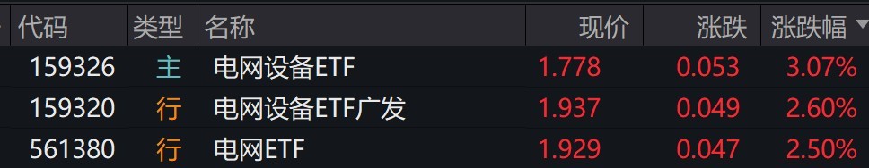 受盤面影響,電網(wǎng)設(shè)備相關(guān)ETF漲超2%。