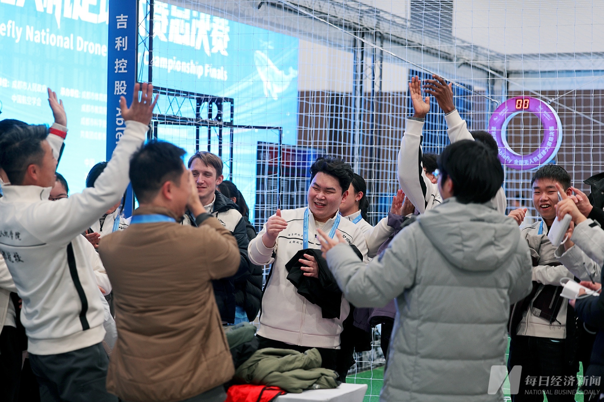 2月9日晚的成都空港國際會議中心,隨著最后一聲哨響落下,吉利控股·Ablefly全國無人機足球大賽總決賽落下帷幕——華東大區(qū)代表隊濰坊文華學校的“菜就多練”隊在歡呼聲中捧起了冠軍獎杯。