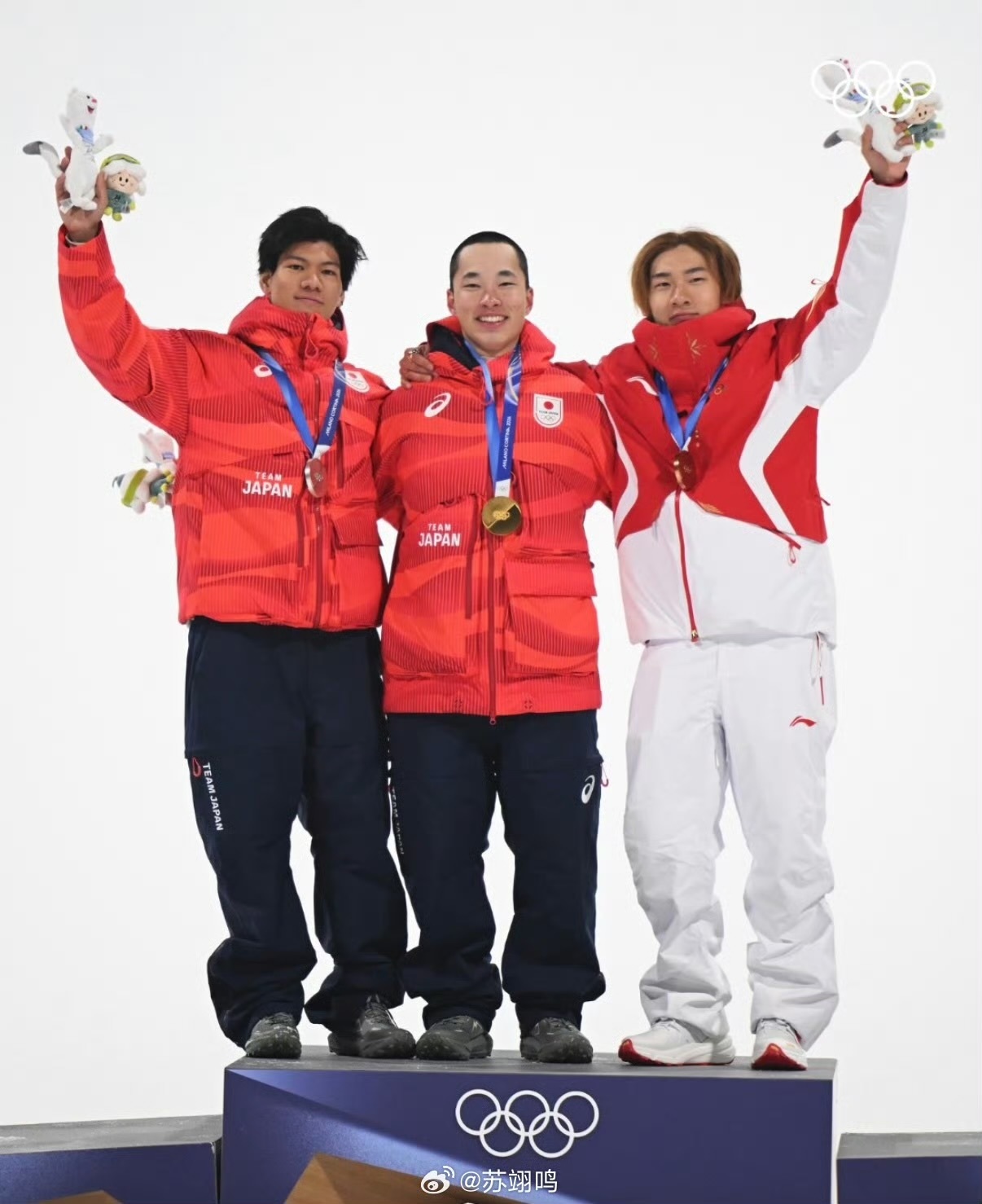 蘇翊鳴(右一)集齊了奧運(yùn)會獎牌的所有顏色 圖片來源:蘇翊鳴微博