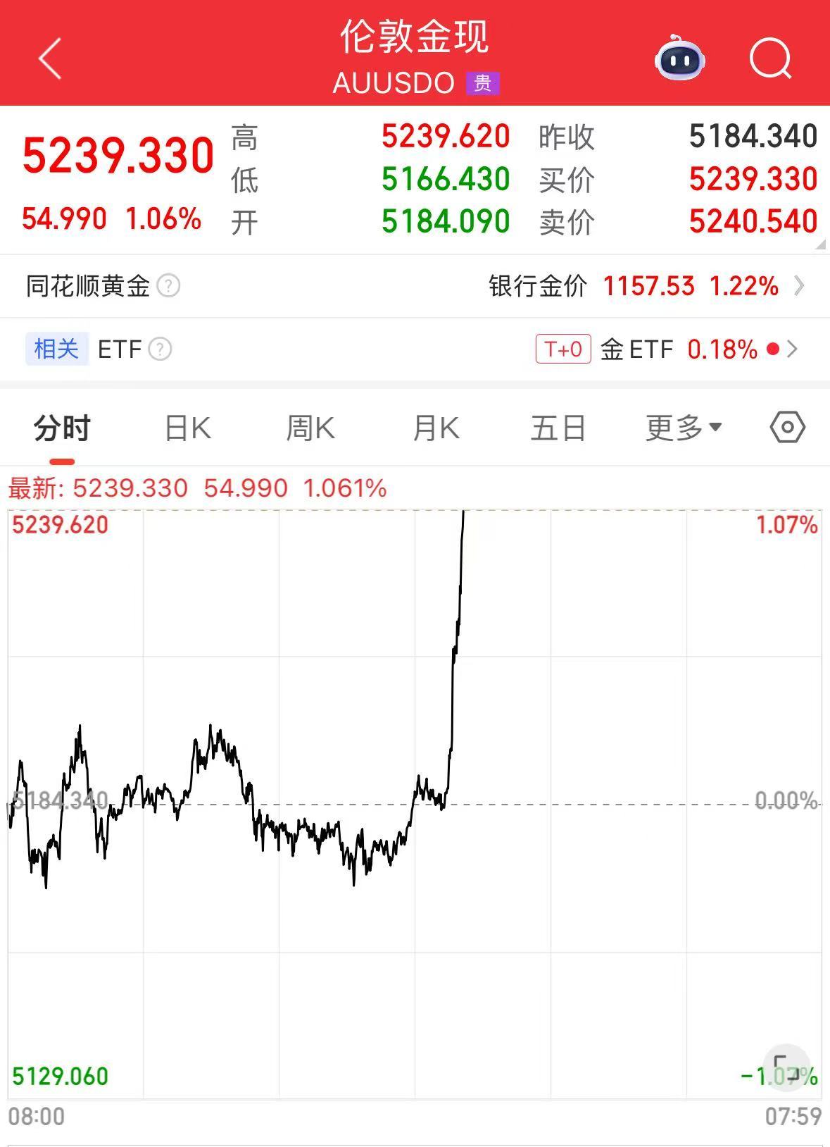 現(xiàn)貨黃金、白銀直線拉升。