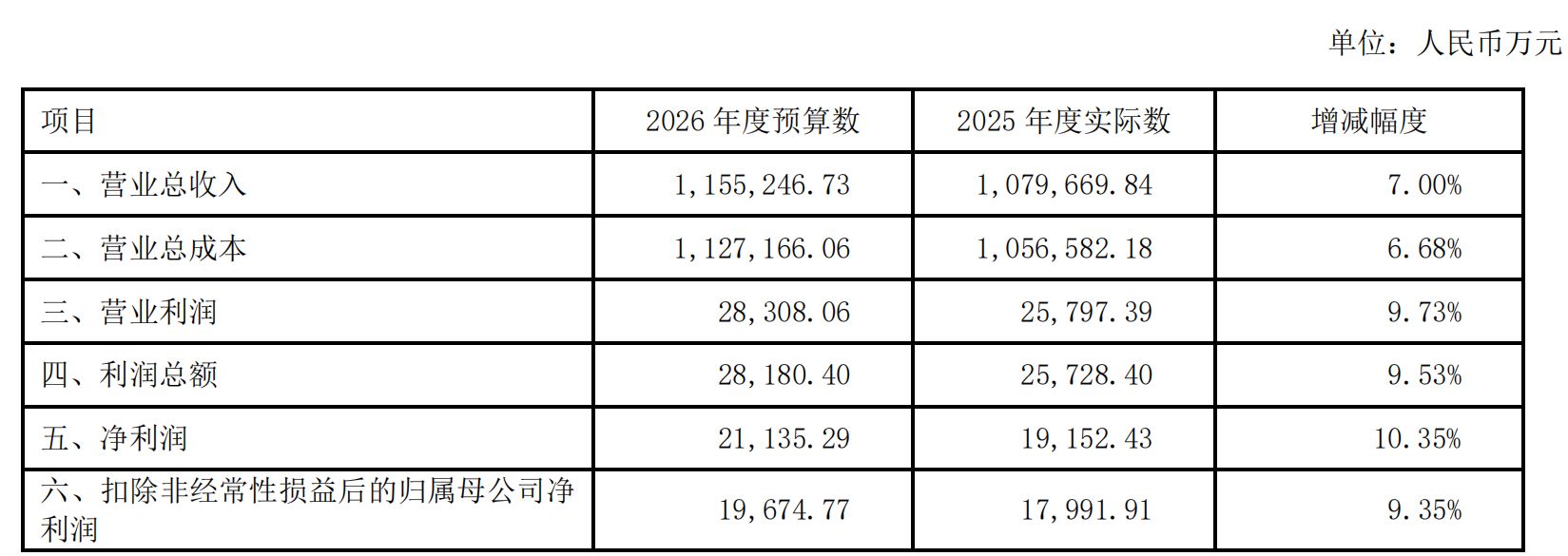 根據(jù)財務預算計劃,眾業(yè)達對2026年的預算數(shù)為營業(yè)總收入約115.52億元,凈利潤約2.11億元,同比分別增長7%、10.35%。