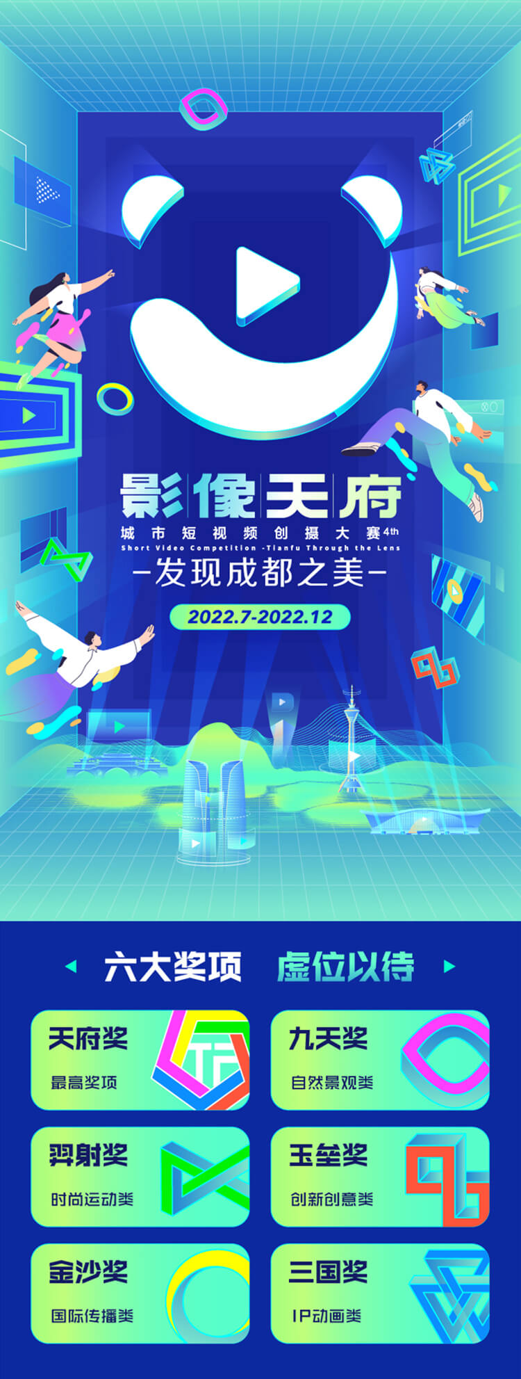 經過連續(xù)3年孵化提升,影像天府·城市短視頻創(chuàng)攝大賽已成為全國影響力最大、作品質量最高的城市短視頻征賽活動。第四屆短視頻創(chuàng)攝大賽將于2022年7月啟動,大賽以文化、旅游、美食、音樂、時尚、體育等要素為媒,邀約全球創(chuàng)攝愛好者用鏡頭“發(fā)現成都之美”,支持創(chuàng)作一批體現“天府文化、國際視野”的短視頻精品力作,為推動全國網絡視聽產業(yè)高質量發(fā)展貢獻更多力量。